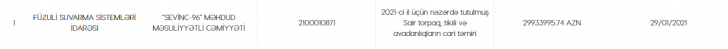 Qeyd edək ki, "Sevinc-96" MMC təkcə bu ilin yanvar ayında "Azərbaycan Meliorasiya və Su Təsərrüfatı” ASC-nin qurumları tərəfindən keçirilən 10 tenderin qalibi olub.