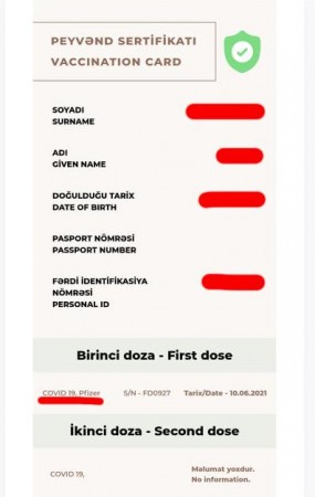 Sözügedən problemlə qarşılaşan şəxslərin sözlərinə görə, vaksinlə bağlı e.tabib-in sertifikatında isə “Pfizer” əks olunub. Bundan başqa, tibb müəssisəsindən vətəndaşa verilən COVİD-19 pasportunda da peyvəndin “Pfizer” olduğu yazılıb.