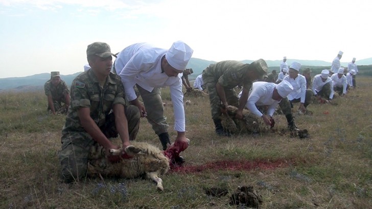 Hərbi qulluqçuların iştirakı ilə keçirilən tədbirdə qurbanlar kəsilib, onlar üçün bayram süfrələri təşkil olunub.