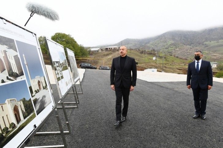 Dövlət başçısı Hadrut qəsəbəsində yeni məscidin təməlini qoyub.