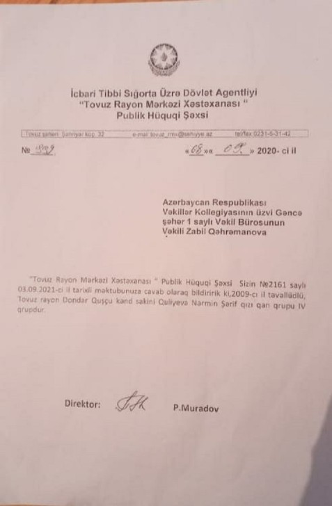 AFN xəbər verir ki, bir neçə gün əvvəl mediada N.Quliyevanın və yandırılaraq dəfn olunan meyitin qan qruplarının uyğun gəlməməsi ilə bağlı məlumat dərc edilib. Həmin vaxt Baş Prokurorluq açıqlama verərək bu məlumatın əsassız olduğunu bildirib. Araşdırmaçı jurnalist Arifə Əliyeva isə bu gün N.Quliyevanın qan qrupu ilə bağlı Tovuz rayon mərkəzi xəstəxanasına verilən sorğunun cavabını yayıb. Cavabdan aydın olur ki, 10 yaşlı N.Quliyevanın qan qrupu IV-dür. Dəfn edilən meyitin qan qrupu isə II göstərilib. "Bu barədə cinayət işində bir neçə yerdə qeyd var" deyə jurnalist bildirib.
