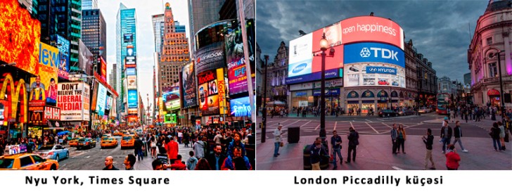 Bundan başqa nümunə kimi misal göstərilən London şəhərində London Piccadilly küçəsi və Nyu York şəhərində Times Square küçəsi müasir monitor tipli reklam lövhələri ilə zəngindir.