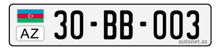 Bu barədə elan saytlarının birində məlumat paylaşılıb. Elanda "30-BB-003” seriyalı dövlət qeydiyyat nişanı 100 min manata təklif edilib.