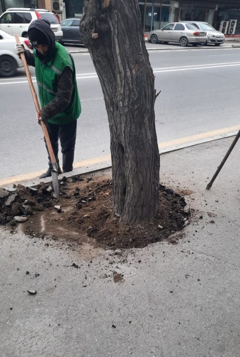 Dövlət Ekoloji Təhlükəsizlik Xidmətinin rəsmisi Vaqif Cavadov bildirib ki, Xidmətin əməkdaşlarının nəzarəti altında ağacların dibi Bakı şəhər Yaşıllaşdırma Təsərrüfatı Birliyinin işçiləri tərəfindən asfaltdan təmizlənib və onlara aqrotexniki xidmət göstərilib.