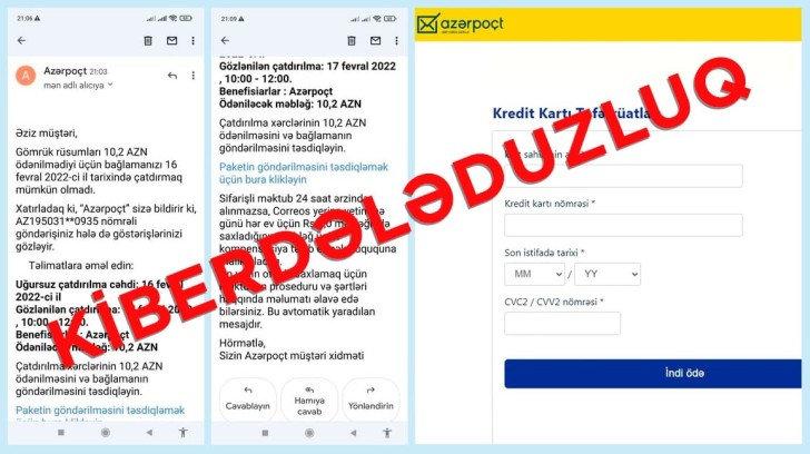 Daha sonra vətəndaş “Azərpoçt” MMC adına açılan saxta sayta yönləndirilir və ondan kart hesabının məlumatları istənilir. Kart məlumatları təqdim edildikdə isə hesabda olan vəsait kiberdələduzların əlinə keçir.