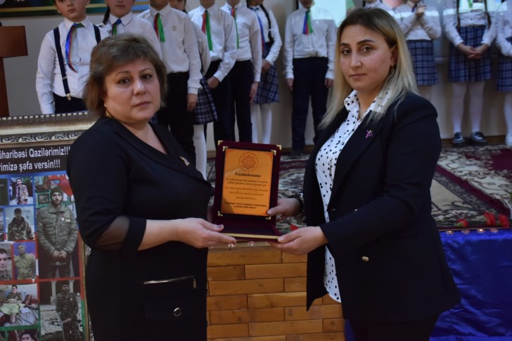 Tədbirin sonunda 221 nömrəli tam orta məktəbin direktoru Günel Səmədovaya və 5e sinfinin rəhbəri Şərifə Qasımovaya "Vətən Bağı" Sosial Təşəbbüslər İctimai Birliyinin təşəkkür plaketləri təqdim olunub.