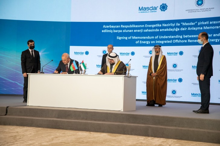 Energetika Nazirliyi ilə "Masdar" şirkəti arasında “Dənizdə inteqrasiya edilmiş bərpa olunan enerji sahəsində əməkdaşlığa dair” Anlaşma Memorandumunu energetika nazirinin müavini Samir Vəliyev və “Masdar” şirkətinin baş icraçı direktoru Mohamed Jameel Al Ramahi imzalayıblar. Memorandum Azərbaycanda bərpa olunan enerjinin tətbiqini dəstəkləmək, eyni zamanda dənizdə külək enerjisindən istifadə, bu enerji hesabına “yaşıl hidrogen” istehsalı, karbon tutulması, istifadəsi və saxlanması, həmçinin digər tədbirləri əhatə edən interqrasiya olunmuş həllərə dair potensial əməkdaşlıq imkanlarını ehtiva edir.