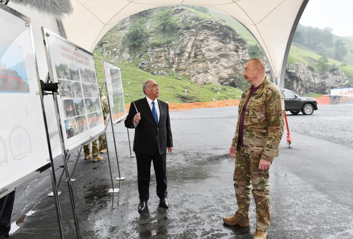 AFN.az xəbər verir ki, dövlət başçısı əvvəlcə Göygöl rayonunda Toğanalı-Kəlbəcər avtomobil yolunun 13-cü kilometrliyində inşa edilən iki tunelin tikintisi ilə tanış olub.
