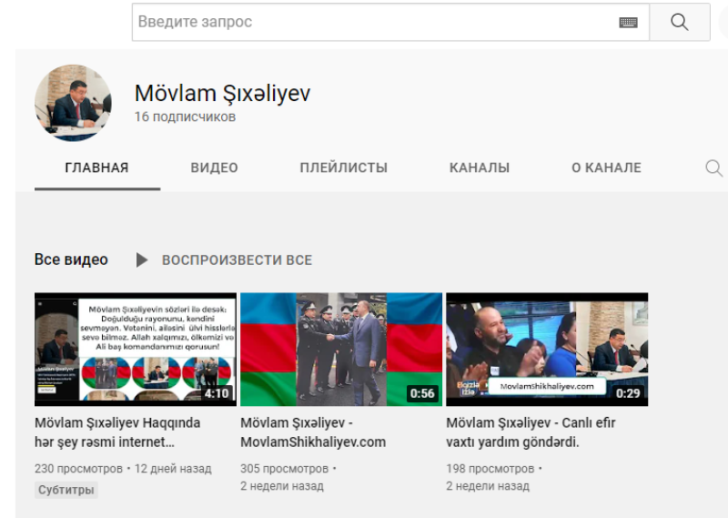 Bundan başqa Mövlam Şıxəliyevin adına Yutubda da kanal açılıb. Burada onunla bağlı informasiyalar olan 3 video yerləşdirilib.