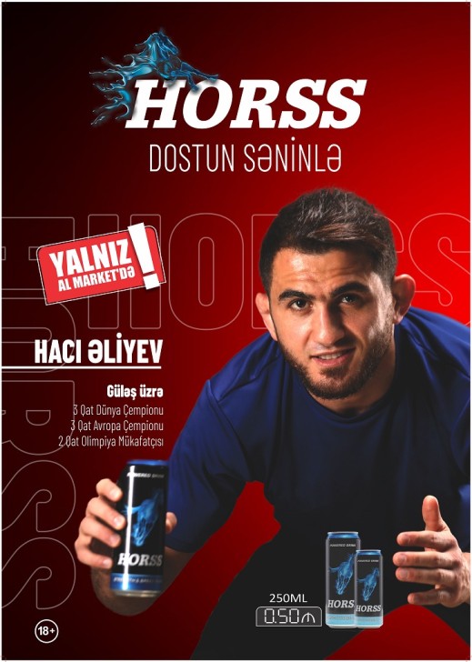 Azərbaycanın fəxri idmançılarından olan Hacı Əliyev yalnız Al Market müştərilərinə özəl təqdim edilən “Horss” içkisinin marka üzü olub.