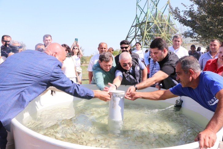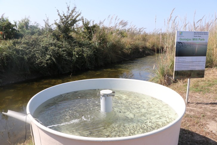 Tədbir çərçivəsində Qızılağac milli parkındakı Kiçik Qızılağac körfəzinə çəkikimi balıq körpələri buraxılıb.
