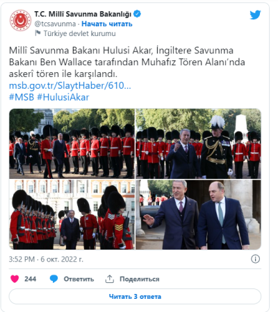 Türkiyənin milli müdafiə naziri Hulusi Akar Britaniyanın müdafiə naziri Ben Uollesin rəsmi dəvəti ilə Londona gedib.