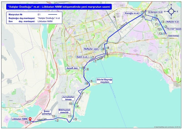 Məlumata görə, yeni xətt üzrə avtobuslar metronun “Xalqlar Dostluğu” stansiyasından başlayaraq Qara Qarayev prospekti - “Koroğlu” metro stansiyası - Heydər Əliyev prospekti - Yusif Səfərov küçəsi - Neftçilər prospekti – “Azneft” dairəsi - Bibiheybət -Lökbatan Nəqliyyat Mübadilə Mərkəzi istiqamətində hərəkət edəcək.
