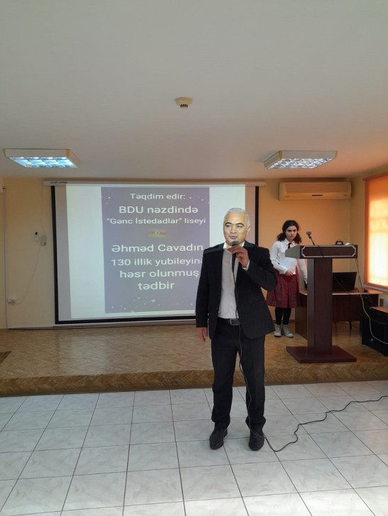 Bakı Dövlət Universitetinin (BDU) nəzdində "Gənc istedadlar" liseyində Azərbaycan ədəbiyyatının görkəmli nümayəndəsi, böyük şair, tanınmış maarifçi və ictimai xadim Əhməd Cavadın anadan olmasının 130 illiyinə həsr olunmuş tədbir keçirilib.
