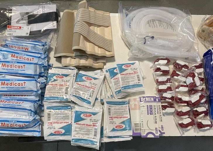 Tibb İdarəsinin rəhbər heyətinin iştirakı ilə qan əvəzediciləri, antibiotiklər, sarğı və tikiş materialları, dezinfeksiya edicilər, eləcə də digər məsrəf tibbi əmlakdan ibarət, ümumilikdə 15 tonluq yük nəqliyyat vasitəsilə Türkiyəyə yola salınıb.