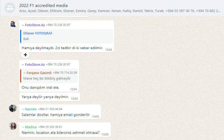 2008-ci ildə yaradılan və özünü PR və Marketinq şirkəti adlandıran bu qurum görünür, öz vəzifə missiyalarını unudub və qara işlərlə məşğuldur. Uzun illərdir ki, Baku City Circuit (Bakı Şəhər Halqası) ilə əməkdaşlıq edən şirkət artıq jurnalistlər arasında seçim etməyə başlayıb. Deyəsən, ölkəmiz üçün turistik baxımdan əhəmiyyətli sayılan "Formula 1" tədbirinin işıqlandırılmasında bu şirkət maraqlı deyil. Hər halda görünən son mənzərə budur. Bakı Şəhər Halqasının son tədbirlərində jurnalistlər və fotoqraflar arasında ayrı-seçkilik salınmağa başlanıb. Onların bəziləri tədbirlərə dəvət olunmurlar. Bu insanlar arasında daha əvvəllər "Formula 1" tədbirlərində akkreditasiyadan keçmiş mətbuat nümayəndləri də var. Sizə whatsapp qrupunda olan yazışmaları təqdim etməyimiz kifayətdir ki, hər şeydən hali olasınız...