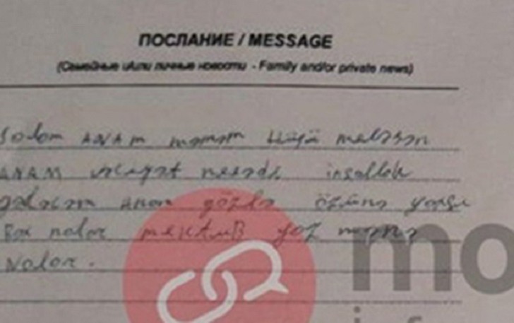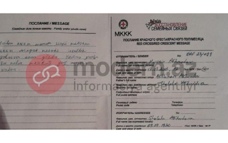 Onun sözlərinə görə, məktub BQXK nümayəndələri tərəfindən təqdim olunub: “Salam anam. Mənəm Hüsü. Necəsən, anam? Vəziyyət necədir? İnşallah, gələcəyəm, anam. Gözlə. Özünə yaxşı bax. Nə olar məktub yaz mənə”, - məktubda deyilir.