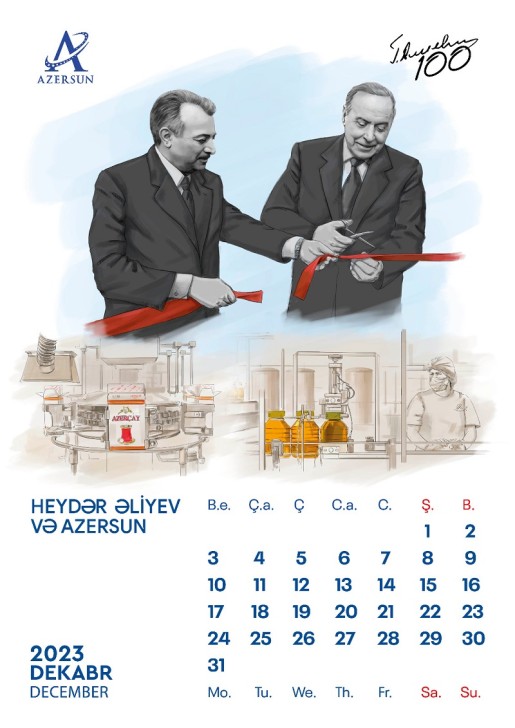 İlk növbədə ilin əvvəli Ulu Öndərin həyatı və siyasi fəaliyyətini özündə əks etdirən “Heydər Əliyev-100” adlı nəfis tərtibatlı təqvim hazırlanıb.