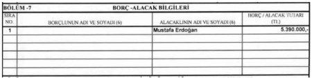 Kreditorun adı və soyadı: Mustafa Erdoğan, Məbləğ: 5 milyon 390 min lirə.