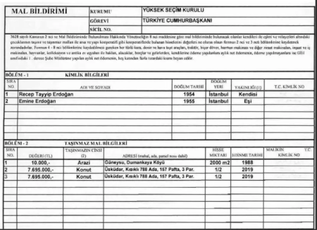 Prezident seçkilərinin nəticələri ilə yanaşı, Ərdoğanın əmlak bəyannaməsi siyahısı da Rəsmi Qəzetdə dərc olunub.