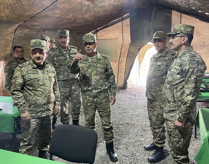 General-polkovnik Z.Həsənov səhra şəraitində açılan komanda idarəetmə məntəqəsinə gələrək fəaliyyətlərin təşkilini yoxlayıb, əməliyyatların aparılması zamanı komandir və qərargah zabitlərinin xəritə, eləcə də ərazinin maketi üzərində qəbul edilən qərarlara dair məruzələrini dinləyib.