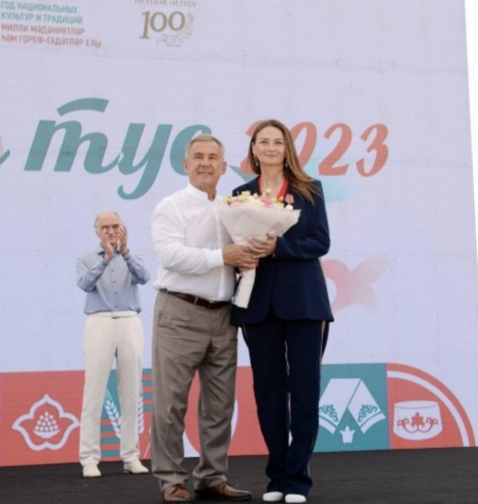 Q.Paşayeva Tatarıstan Respublikasının Rəisinə yüksək təltifə görə minnətdarlıq edib: “Qarşılıqlı əlaqələrimizin gücləndirilməsi istiqamətində Sizin və Prezident İlham Əliyevin yüksək xidmətləri bizlər üçün bir nümunədir. Biz sizin xidmətlərinizdən ilham alırıq. İnanırıq ki, qardaş xalqlarımız arasındakı mədəni əməkdaşlıq, ümumən bütün əməli fəaliyyətlər üzrə əlaqələr getdikcə daha da güclənəcəkdir.