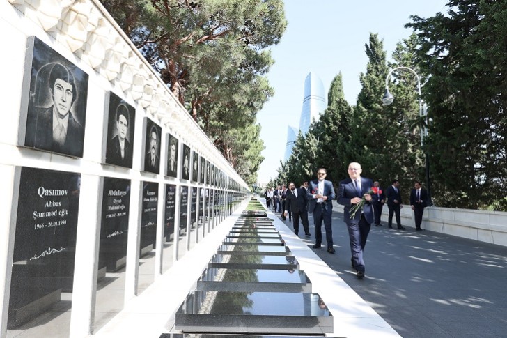 Şəhidlər xiyabanını da ziyarət edən qonaqlar Azərbaycanın müstəqilliyi və ərazi bütövlüyü uğrunda canlarından keçən Vətən övladlarının xatirəsini anıb, "Əbədi məşəl" abidəsinin önünə əklil qoyulub.