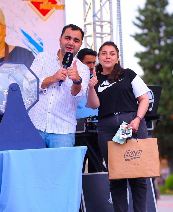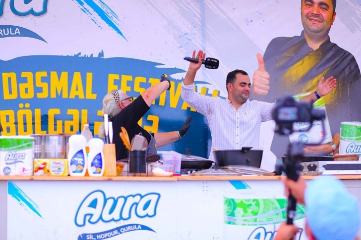 “AURA Kağız Dəsmal Festival”ı çərçivəsində qeyd olunan şəhərlərin mərkəzi parklarında “Mənim Süfrəm” verlişinin aparıcıları Fərid Rəsul və Elmira Qədirova izləyiciləri ilə canlı olaraq görüşdü, hər anı rəngarəng keçən bu festivallarda xoş dəqiqələr yaşandı. Yüzlərlə insanı səhnə önündə, minlərlə insanı ekran qarşısında bir araya toplayan bu tədbirlərdə kağız dəsmalın gündəlik yaşamımızda, məişətdə necə praktik olduğu nümayiş olundu. Səhnəmizdə qurulan səyyar mətbəxdə növbənöv təamlar bişirildi, bu dadlı yeməklərdən dadan izləyicilər eyni anda kağız dəsmalın istifadə sahələrini canlı-canlı izlədilər. İnsanlarımızın fərqində olmayıb amma gördükləri zaman çox maraqla qarşıldıqları müxtəlif istifadə sahələrinin gələcəkdə onların daimi vərdişlərinə çevriləcəyi labüddür. Müxtəlif yarışmalar, bol-bol hədiyyələr, unudulmaz anlar ilə yadda qalan bu festivallarda insanlarımız həm əyləndi, həm öyrəndi, həm də tətbiq etdi!