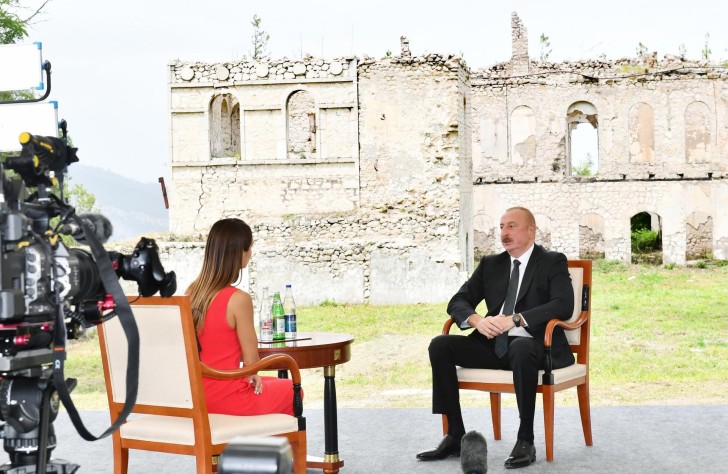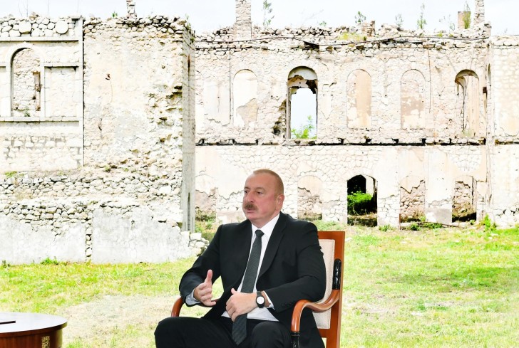 Otuzillik işğaldan əziyyət çəkmiş ölkəmizin işğal altında olan əraziləri tamamilə məhv edilmişdir. Şuşada qeyri-qanuni məskunlaşmalar olduğu üçün şəhər tamamilə dağıdılmamışdır. Onlar Orta Şərqdən olan erməniləri burada məskunlaşdırmaq istəyirdilər və burada bir neçə min erməni yaşayırdı. Məhz buna görə heç də bütün şəhərlər dağıdılmamışdır. Lakin Füzuli tamamilə yerlə-yeksan edilmişdir, Ağdamda da vəziyyət eynidir. Demək olar ki, bir milyon azərbaycanlı evindən məhrum olmuşdur. Bütün bu acıya baxmayaraq, biz qisas almadıq. Mən dedim ki, biz qisası döyüş meydanında alacağıq, lakin Ermənistan müharibənin ilk günündən mənim tələb etdiyim bütün ərazilərdən geri çəkiləcəyi tarixləri bizə təqdim edən kimi biz dayandıq və sonra da sülh haqqında danışıqlara başladıq. İndi sülh bizim gündəliyimizdədir. Ermənistan sülh istəyərsə, biz ona nail olacağıq. Çünki bizim Ermənistana qarşı hər hansı bir ərazi iddialarımız yoxdur. Biz onların da Azərbaycana qarşı ərazi iddialarının olmamasını istəyirik. Qarabağda, hazırda müvəqqəti olaraq rusiyalı sülhməramlıların nəzarəti altında olan ərazidə yaşayan insanlar Azərbaycanda yaşayırlar və onlar onsuz da Azərbaycanın çox zəngin olduğu digər milli azlıqları kimi Azərbaycan vətəndaşları olaraq yaşayacaqlarına və ya Azərbaycanı tərk edəcəklərinə dair seçim etməlidirlər. Bu, onların seçimidir. Bu, bizim onları buranı tərk etməsini istədiyimizə və ya Ermənistanın bizi etnik təmizləmə siyasəti aparmaqda günahlandırdığına görə etmirik. Biz onlara seçim hüququ veririk. Çünki onlar heç bir hüquqi icazə olmadan ya Ermənistan vətəndaşları olaraq, ya da heç kim tərəfindən tanınmayan dırnaqarası “Dağlıq Qarabağ respublikası”nın vətəndaşları olaraq bizim ərazidə necə yaşaya bilərlər? Hesab edirəm ki, bu, legitim yanaşmadır. Bu yanaşma beynəlxalq təcrübəyə uyğundur. Bu yanaşma separatizmə qarşı mübarizə aparan bir çox Avropa ölkələrində gördüyümüz təcrübəyə uyğundur. İndi biz separatizmə qarşı mübarizə aparmaqda Ukraynaya kömək etmək üçün Avropa və Qərbin necə birləşdiyini görürük. Bəs bizə gəldikdə nəyə görə bizim separatizmə qarşı mübarizəmizə fərqli yanaşma sərgilənir? Nəyə görə Gürcüstanın separatçı regionlarına qarşı yanaşması Qərb cəmiyyəti və siyasətçiləri tərəfindən tamamilə anlaşılır, lakin bizim eyni mənşədən olan separatizmə son qoymaq üçün legitim istəyimiz sual atlına alınır? Nə üçün İspaniya Kataloniyaya referendum keçirməyə icazə vermir, baxmayaraq ki, onların sayı 5, yaxud 6 milyon nəfərdir və yaxınlıqda öz dövləti olan ermənilərdən fərqli olaraq, onların öz dövləti yoxdur. Nə üçün biz separatizmə dözməliyik? Biz bunu etməyəcəyik.