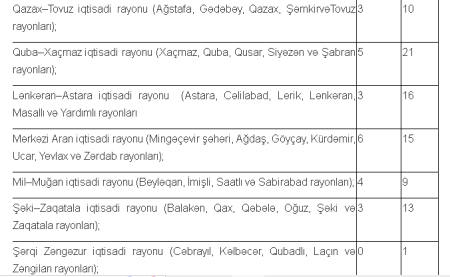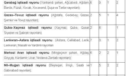 Cədvəl 8. Ərazi üzrə bölgü