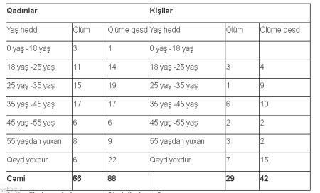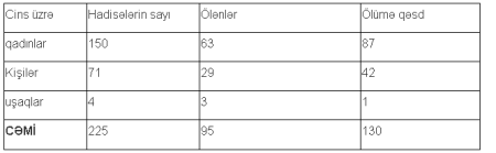 Cədvəl 6. İntihar halları ilə bağlı göstəricilər