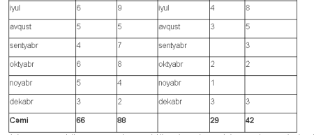 Cədvəl 4. Aylar üzrə göstəricilər