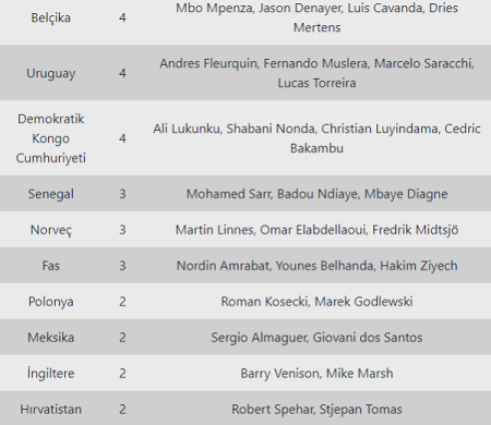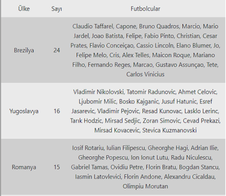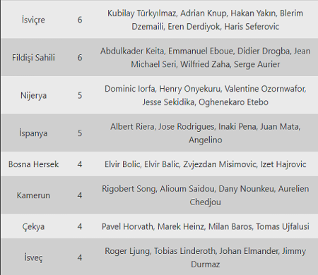 Qeyd: Sonradan Türkiyə vətəndaşlığını alan futbolçular xəbərlərdə əcnəbi sayılırdı.