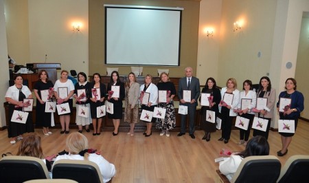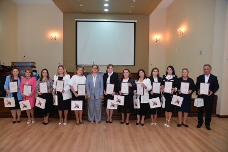 Daha sonra pedaqoji fəaliyyətində səmərəli xidmətlərinə görə, həmçinin 2024-cü ildə yubileyi olan məktəb direktorlarına, direktor müavinlərinə BŞTİ-nin Həmkarlar İttifaqı Komitəsi tərəfindən Fəxri Fərman və hədiyyələr təqdim olunub.