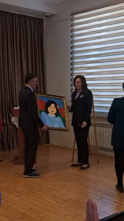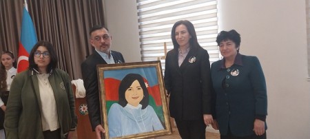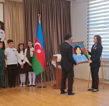 Sonda C.Əsgərova Salatın Əsgərovanın XDTG-nin 10-cu sinif şagirdi Fatimə Rəhimlinin çəkdiyi portreti hədiyyə edilib.