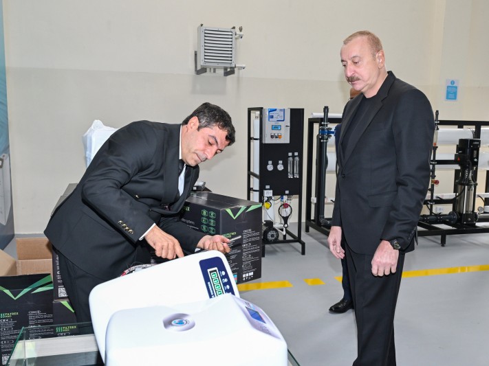 Azərbaycan Respublikasının Prezidenti İlham Əliyev oktyabrın 28-də Sabirabad Sənaye Məhəlləsində "Fırtına Su Sistemləri” Məhdud Məsuliyyətli Cəmiyyətinin (MMC) su filtrlərinin istehsalı müəssisəsinin fəaliyyəti ilə tanış olub.