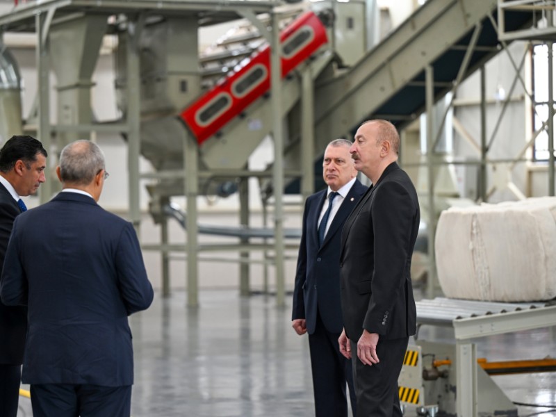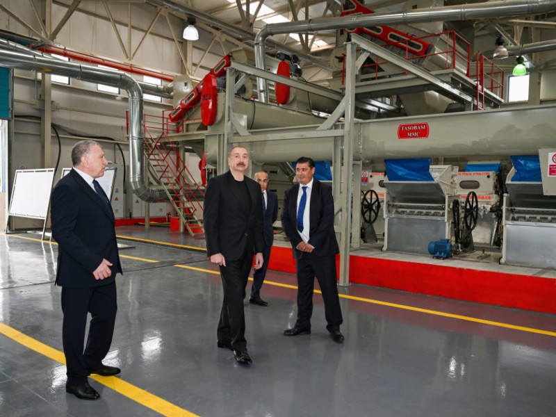 Azərbaycan Respublikasının Prezidenti İlham Əliyev oktyabrın 28-də Sabirabad Sənaye Məhəlləsində "Taşobası” Məhdud Məsuliyyətli Cəmiyyətinin (MMC) pambıq emalı zavodunun fəaliyyəti ilə tanış olub.