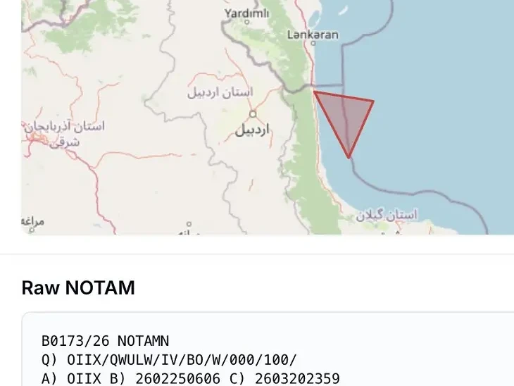 İran ötən gün Azərbaycanla sərhəd boyunca NOTAM (uçuş xəbərdarlığı) bildirişi yayıb.