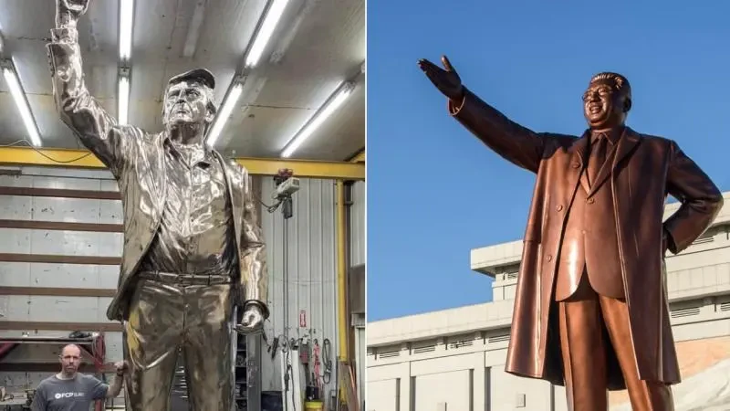 Trampın qızıl heykəli Şimali Koreya liderlərinin abidələrinə bənzədildi