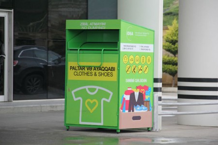 Təkrar istifadənin ətraf mühitə müsbət təsirini və geyim əşyalarına olan tələbatı nəzərə alaraq, IDEA İctimai Birliyi tərəfindən Bakıda istifadəsiz paltar və ayaqqabıların toplanması üçün ianə qutuları quraşdırılıb. Şəhərimizin müəyyən nöqtələrində yerləşdirilən qutulara insanlar artıq istifadə etmədikləri və paylaşmaq istədikləri geyimlərini yerləşdirə bilər. Bu cür xeyriyyə məqsədli təkrar istifadə qutuları ilkin olaraq "Bravo” hipermarketləri və Babək prospektində yerləşən "Bravo” supermarketdə, həmçinin həmin prospektdəki "SOCAR Petroleum” yanacaqdoldurma məntəqəsində quraşdırılıb. Yaxın vaxtlarda oxşar paltar toplanma qutularının Bakının digər münasib yerlərində də quraşdırılması nəzərdə tutulur.