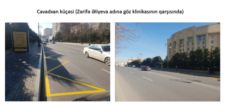 Həmçinin, Cavadxan küçəsində (Zərifə Əliyeva adına göz klinikasının qarşısında) mövcud avtobus dayanacaq məntəqəsi svetoforla nizamlanan yol kəsişməsində təşkil edildiyindən həmin ərazidə avtobusların dayanması sərnişinlərin təhlükəsizliyini təmin etmədiyindən və hərəkət iştirakçılarına maneə yaratdığından, avtobus dayanacaq məntəqəsi kəsişmədən irəlidə təşkil edilib.
