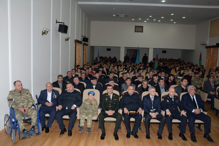 Rayon Mədəniyyət Mərkəzində davam etdirilən tədbirdə ilk öncə torpaqlarımızın ərazi bütövlüyü uğrunda canlarından keçmiş şəhidlərin xatirəsi bir dəqiqəlik sükutla yad edilib, Azərbaycan Respublikasının Dövlət Himni səsləndirilib və Milli Qəhrəman Elman Hüseynova həsr olunmuş “İlk komandir” sənədli filmi nümayiş olunub.