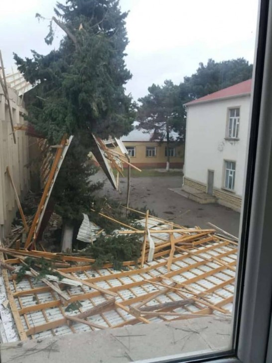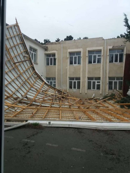 Bakının Sabunçu rayonunda yerləşən 188 saylı orta məktəbin dam örtüyünü külək dağıdıb.
