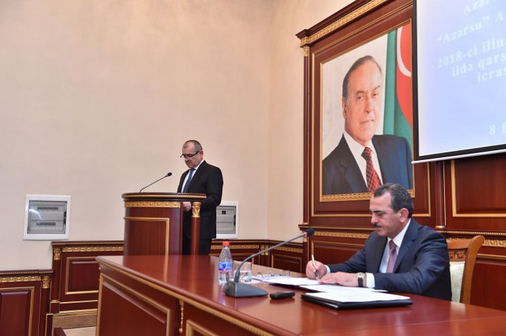 “Azərsu” Açıq Səhmdar Cəmiyyətinin 2018-ci il üzrə fəaliyyətinin yekunlarına və qarşıda duran vəzifələrə həsr olunmuş iclası keçirilib.
