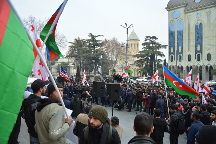 Bu gün Tbilisidə parlament binası qarşısında Dağlıq Qarabağda döyüşmüş Mixail Avakyanın büstünün qoyulmasına etiraz olaraq aksiya keçirlib.
