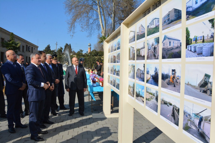 verilmişdir. Tərtər şəhərinin içməli su və kanalizasiya sistemi qurulmuş, 15 kənd içməli su ilə təchiz olunmuşdur. 112 ictimai yaşayış binasının dam örtükləri, fasad və giriş hissələri əsaslı təmir olunmuş, həyətlərinə asfalt salınmış, 4 küçədə abad məhəllə yaradılmış, 2 mini futbol meydançası quraşdırılmışdır. Rayon icra hakimiyyətinin qarşısındakı mərkəzi meydan və Heydər Əliyev parkı yenidən qurulmuşdur. Bundan başqa şəhərin 36 küçə və meydanlarında təmir-abadlıq işləri aparılmış, asfalt örtüyü qoyulmuşdur. Təmas xəttində yerləşən 5 kənddə gecə işıqlanması sistemi quraşdırılmışdır. 2016-cı ilin aprel hadisələri zamanı 17 yaşayış məntəqəsində 256 fərdi yaşayış evinə dəymiş ziyan aradan qaldırılmışdır. Rayonda ekoloji tarazlığın qorunması məqsədilə Bərdə, Ağdam və Gəncə istiqamətində yol kənarlarına və rayonun yaşayış məntəqələrində, meşə zoladlarında 35 mindən çox müxtəlif növ ağaclar, 6 min gül kolları və 650 min ədəd həmişəyaşıl kolları əkilmişdir.
