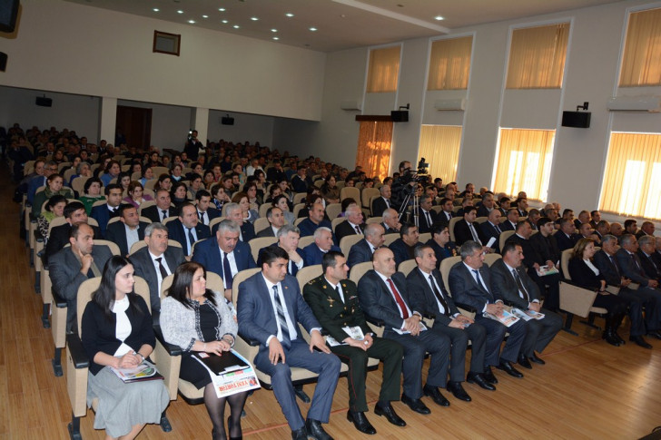 Prezident Administrasiyasının məsul işçisi Arif Novruzov, Milli Məclisin deputatı Sahib Alıyev çıxış edərək, Prezident İlham Əliyevin rəhbərliyi ilə Azərbaycanda həyata keçirilən sosial-iqtisadi inkişafdan, qazanılan uğurlardan, habelə qarşıda duran vəzifələrdən danışıblar. Sonda qərar layihəsi oxunub, iştirakçıları adından Prezident İlham Əliyevə müraciət qəbul edilib.