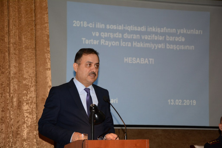 Bu barədə rayonda 2018-ci ilin yekunlarına həsr olunan hesabat yığıncağında bəhs edilib. Yığıncaq iştirakçıları əvvəlcə ümummilli lider Heydər Əliyevin Tərtər şəhərinin mərkəzi meydanındakı abidəsi önünə gül-çiçək dəstələri düzüb, 2018-ci ildə rayonun sosial-iqtisadi göstəricilərini əks etdirən stendlərə, istehsal edilən məhsullara və video-slayda baxıblar.