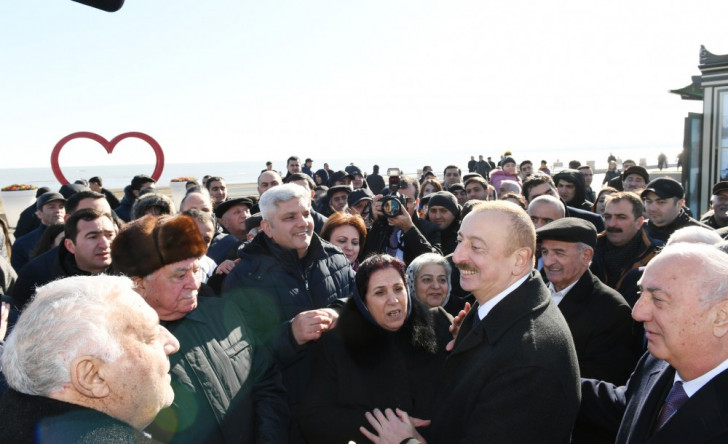 Dənizkənarı bulvarda Sumqayıt sakinləri dövlət başçısına yaxınlaşaraq söhbət ediblər.