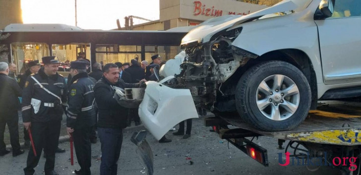 AFN unikal.org-a istinadən xəbər verir ki, ilkin məlumata görə, şəhərin Nizami küçəsi ilə Əzizbəyov küçələrinin kəsişməsində "Toyoto Prado” markalı avtomobilin avtobusun yoluna çıxması nəticəsində qəza baş verib. Sərnişin avtobusunun sürücüsü qəzadan yayınmağa çalışsa da, idarəetməni itirərək yaşayış binasına çırpılıb. Yaralılar var.